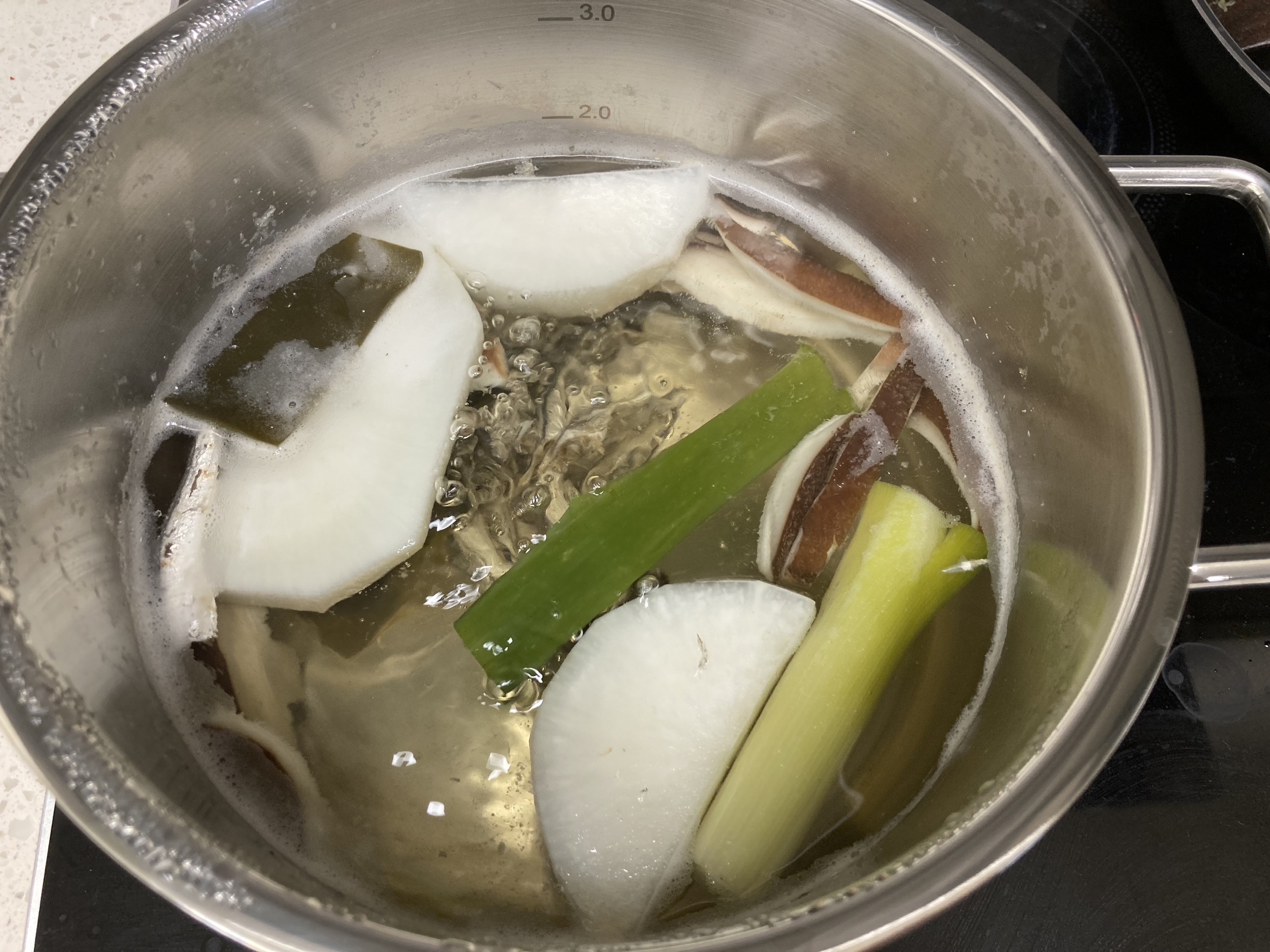 2. 물 1리터(저는 1.5리터 넣었습니다)에 나머지 육수 재료를 넣고 중불에서 10분 끓여줍니다.