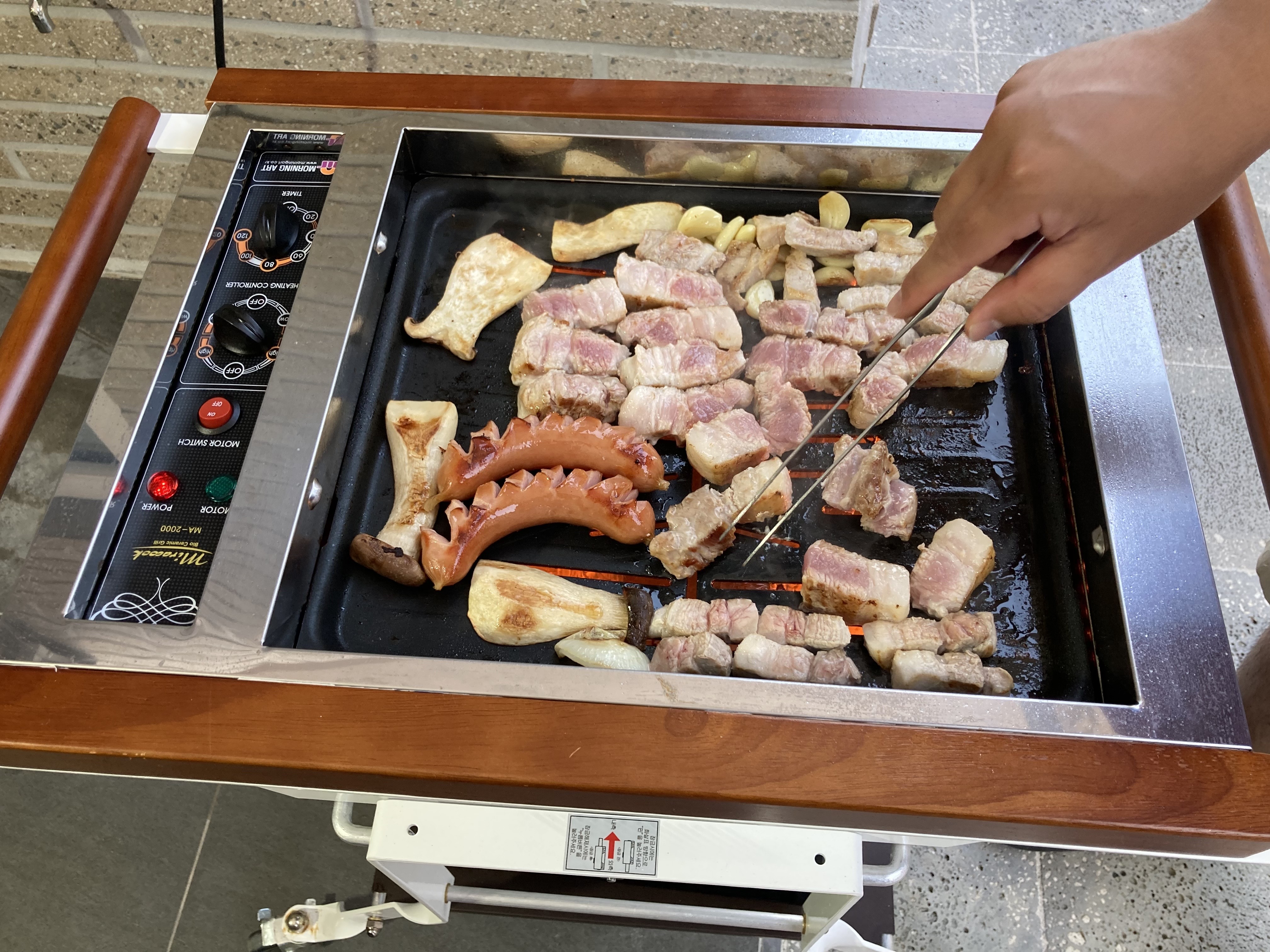 주방과 연결이 되어 있어서 이동하기에 불편하지 않았습니다. 바베큐 그릴은 유료 대여가 가능합니다.