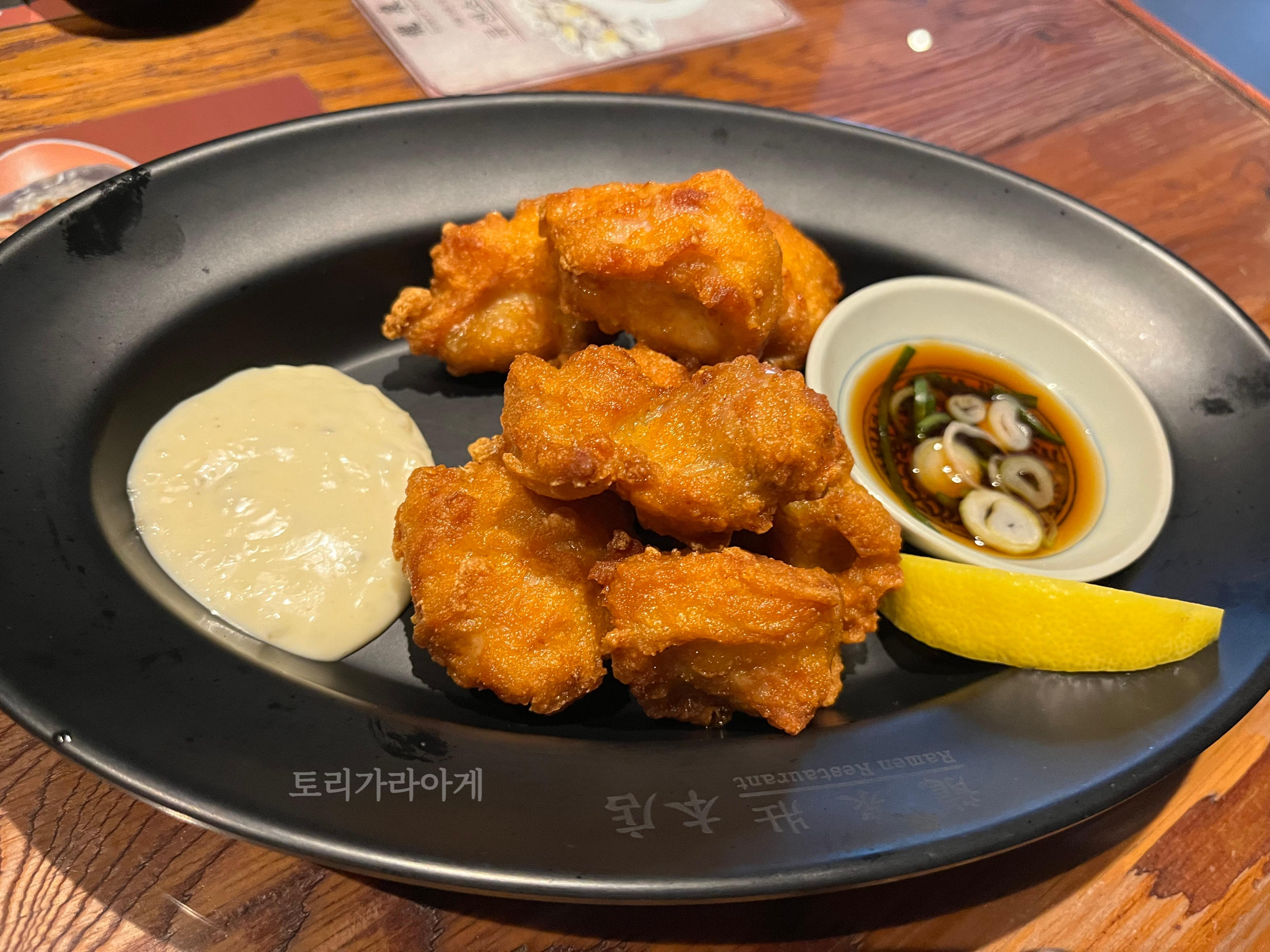 막내는 아직 어려서 익숙치 않은 라면맛은 거부할 게 뻔해서 토리 가라아게와 밥을 같이 주문 했는데, 아는 맛이죠 :) 아이가 맛있게 한끼 식사 해결했습니다!!