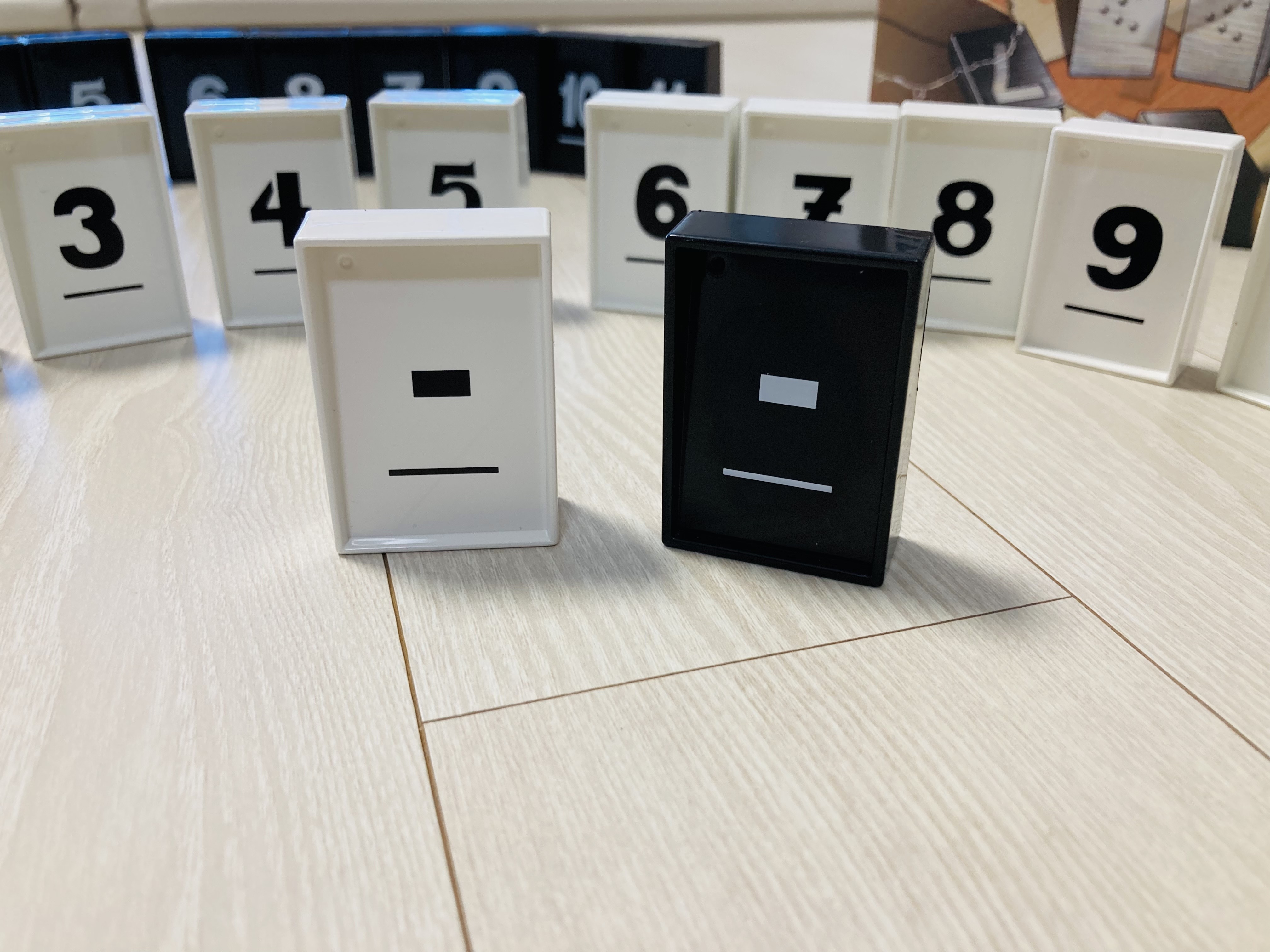 ⊙ 숫자타일 x 24 : 숫자 0부터 11까지 각각 하나씩 적혀 있는 흰색과 검은색 타일 각각 열두 개씩